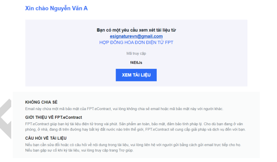 Từ email, copy **mã truy cập** và chọn nút **xem tài liệu.**