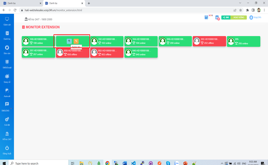 Tích hợp giám sát máy nhánh lên trang telesales và thao tác một số chức năng như: